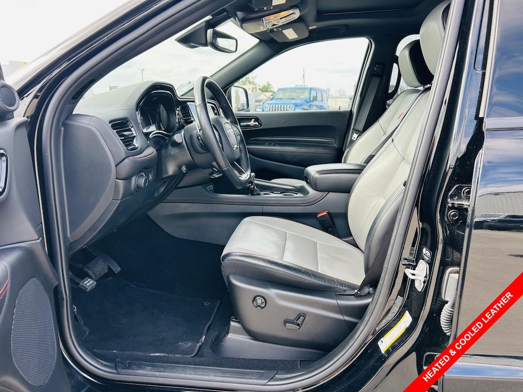 The 2024 Dodge Durango GT Plus AWD offers a comfortable and refined interior designed with the whole family in mind. Sink into the Leather front seat upholstery in Vitra Gray/Black, and enjoy the convenience of power driver and passenger seat controls, including reclining, lumbar support, cushion tilt, fore/aft control, and height adjustment. The driver and front passenger seats are also heated and cooled, ensuring comfort in any weather. The Sport Heated Leather Steering Wheel adds a touch of luxury, while the automatic climate control and rear climate control system with separate controls keep everyone comfortable. Enjoy the convenience of remote start and power door locks with 2-stage unlocking. The Power Liftgate Rear Cargo Access makes loading and unloading cargo a breeze. The Rear headliner/pillar ducts and Rear console climate control ducts further enhance comfort for rear passengers. The Durango offers plenty of space for passengers and cargo, with a 60-40 Folding Split-Bench Front Facing Tumble Forward Rear Seat and a Fixed 50-50 Split-Bench 3rd Row Seat Front.