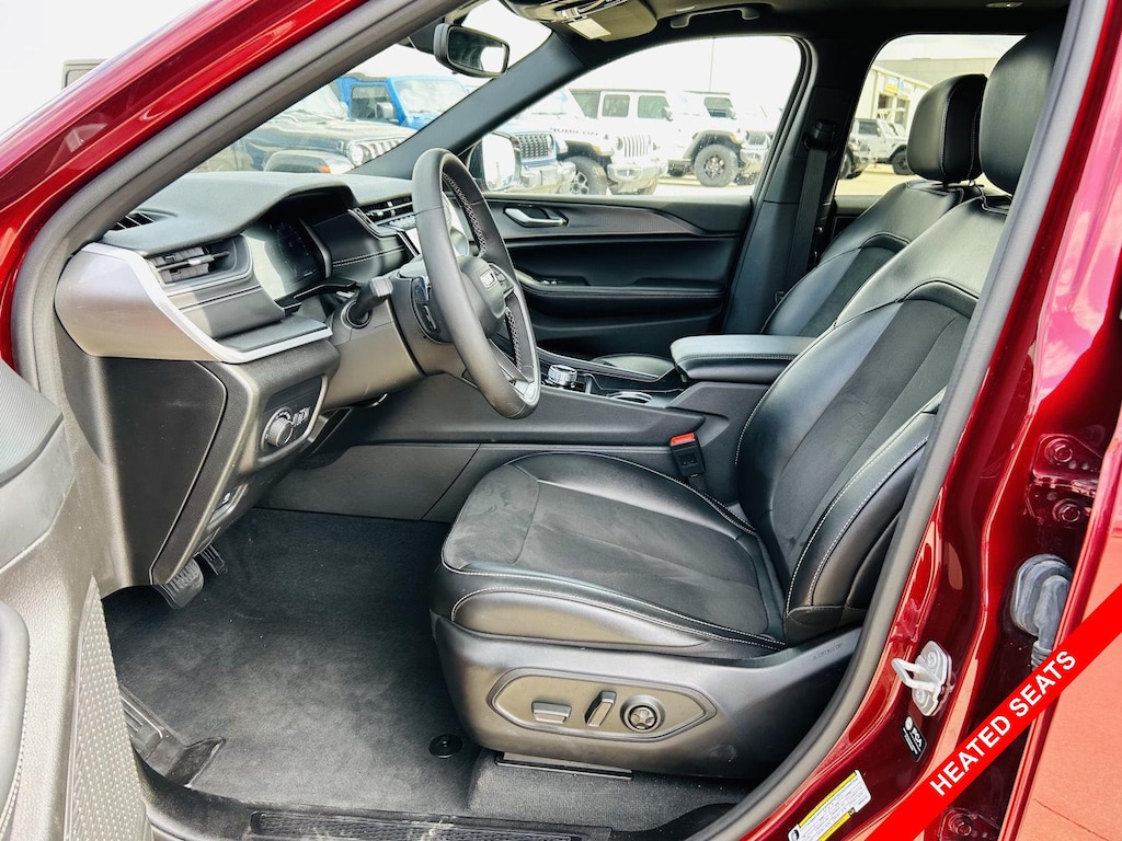 The interior of the 2024 Jeep Grand Cherokee L Altitude X 4x4 is designed with comfort and convenience in mind. The Simulated suede and leatherette front seat upholstery provides a premium feel, while the Heated front seats and Heated steering wheel keep you warm on chilly mornings. The Automatic climate control and Dual-zone front climate control ensure that everyone stays comfortable, while Rear climate control with separate controls extends that comfort to the second-row passengers. The Power driver seat controls with power lumbar support allow you to find the perfect driving position, while the Manual passenger seat controls offer adjustability for your front passenger. The Leatherette Steering Wheel adds a touch of sophistication. The Power liftgate rear cargo door makes loading and unloading cargo a breeze. With features like Remote start, you can warm up the vehicle before you even step outside.