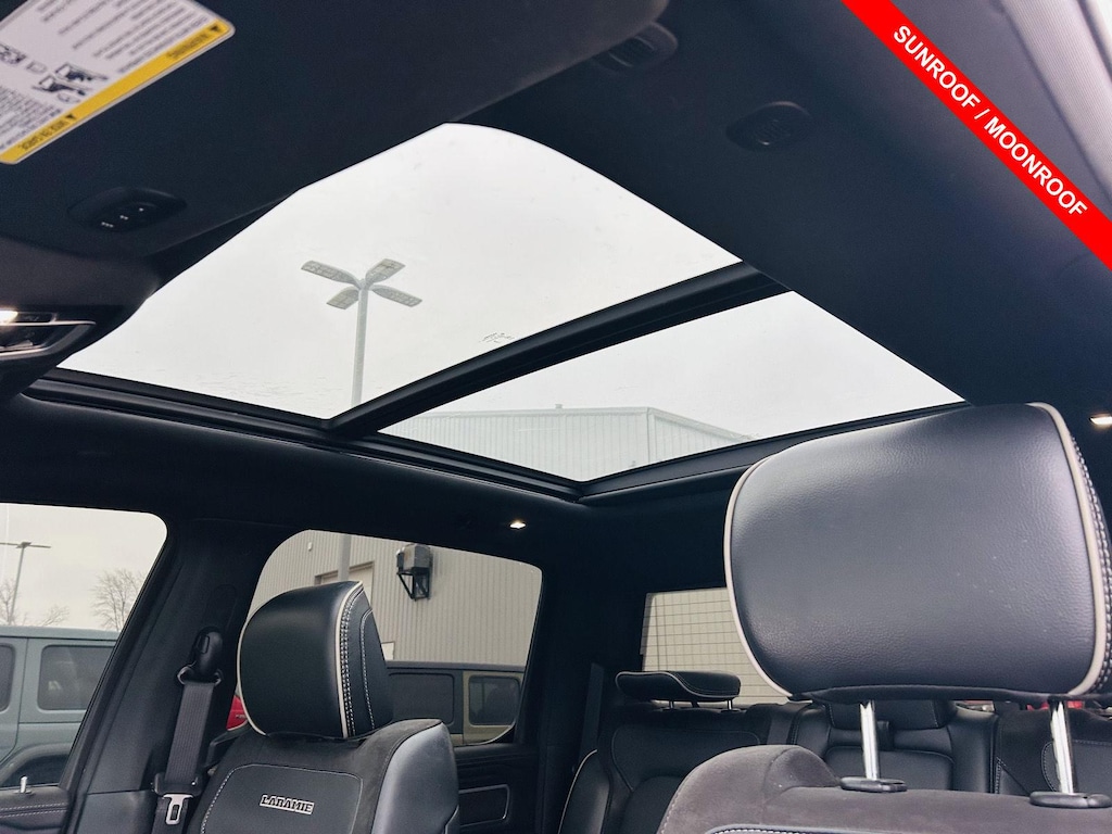 ENGINE: 5.7L V8 HEMI MDS VVT ETORQUE, TRANSMISSION: 8-SPEED AUTOMATIC (8HP75), QUICK ORDER PACKAGE 27H LARAMIE, 3.21 REAR AXLE RATIO, WHEELS: 22 X 9 FORGED ALUMINUM, TIRES: 285/45R22XL BSW ALL SEASON, IVORY WHITE TRI-COAT PEARLCOAT, BLACK, LEATHER TRIMMED BUCKET SEATS, ADVANCED SAFETY GROUP, LARAMIE LEVEL B EQUIPMENT GROUP, NIGHT EDITION, TRAILER TOW GROUP, ANTI-SPIN DIFFERENTIAL REAR AXLE, CLASS IV RECEIVER HITCH, TRAILER BRAKE CONTROL, DUAL-PANE PANORAMIC SUNROOF, RADIO: UCONNECT 5 NAV W/12.0 DISPLAY, MOPAR FRONT & REAR RUBBER FLOOR MATS, PARKSENSE FRONT/REAR PARK ASSIST W/STOP, REAR UNDERSEAT COMPARTMENT STORAGE