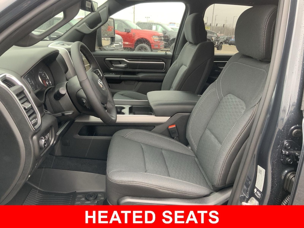 Step inside the RAM 1500 Big Horn and experience a comfortable and well-equipped interior. The Premium cloth front seat upholstery offers a comfortable seating surface, while the Power Adjust 8-Way Driver Seat and Power 2-Way Driver Lumbar Adjust allow you to find the perfect driving position. Stay cozy with Heated front seats and a Heated steering wheel on those chilly mornings. The Dual-zone front climate control ensures both you and your passenger stay comfortable, while Rear console climate control ducts keep rear passengers happy as well. The Power door locks with 2 stage unlocking provide added security and convenience, and the Remote panic alarm offers peace of mind. The Steering wheel material Leather steering wheel adds a touch of refinement to the cabin.