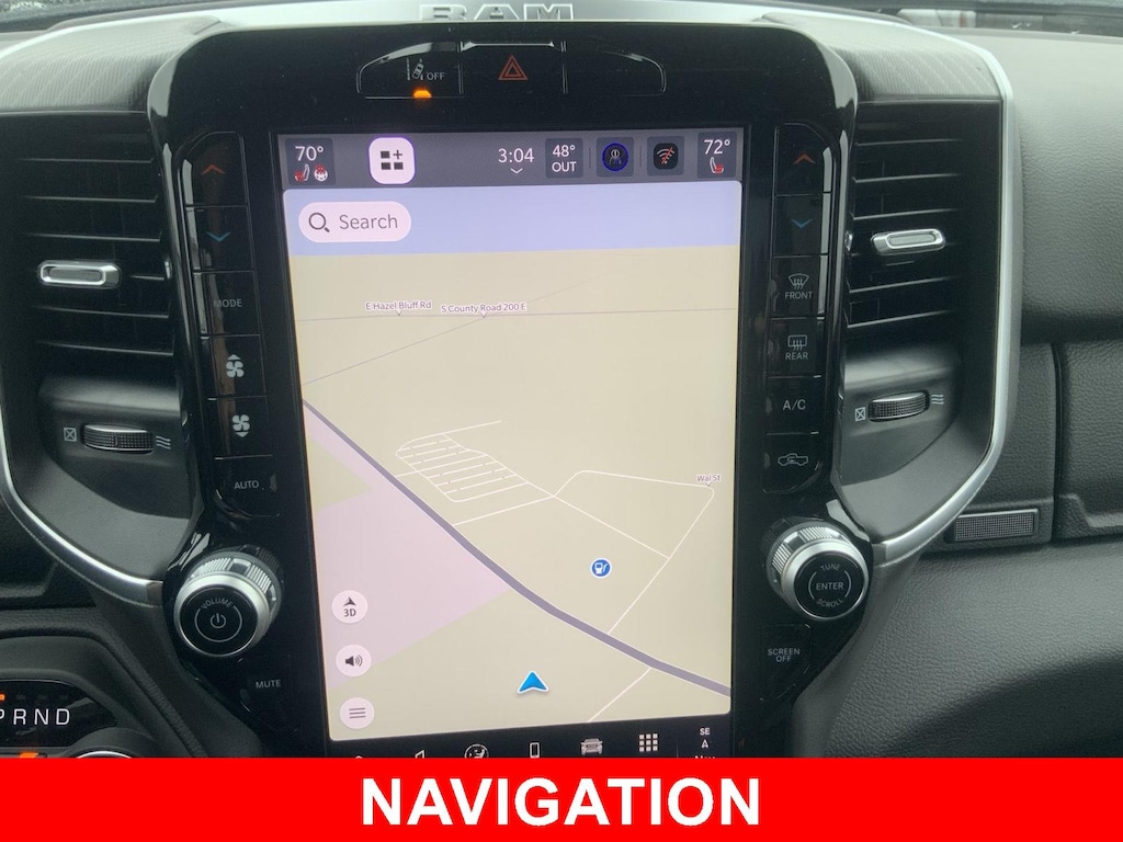 Stay connected and entertained on the go with the advanced technology features of this RAM 1500. The Uconnect w/Bluetooth handsfree wireless device connectivity keeps you connected while keeping your hands on the wheel. The vibrant 12 inch primary display with its Primary monitor touchscreen offers intuitive control of your favorite apps and features. Enjoy seamless Smart device integration through Apple CarPlay/Android Auto smart device wireless mirroring, and stream your favorite tunes via Bluetooth wireless audio streaming. With a generous array of 9 USB ports, everyone can keep their devices charged and ready. The Integrated navigation system with voice activation ensures you'll always find your way, whether you're headed to a job site near Paris, IL or exploring new backroads.