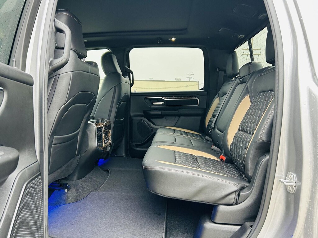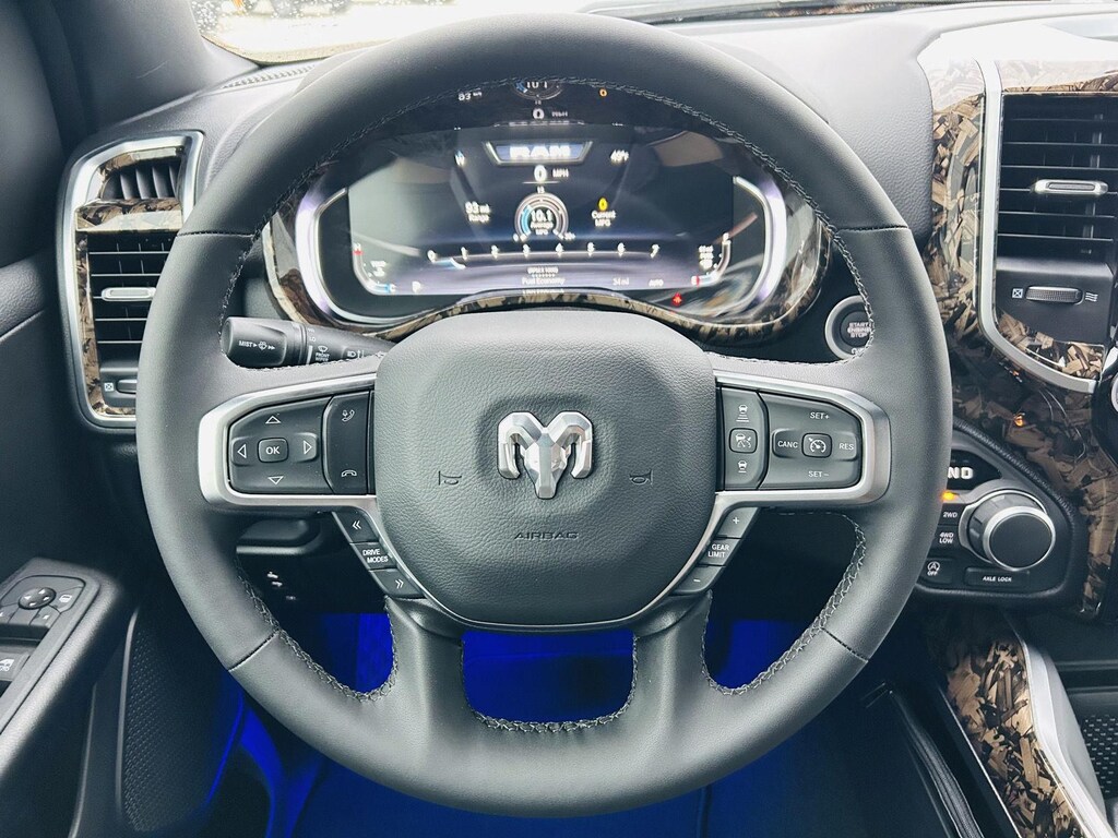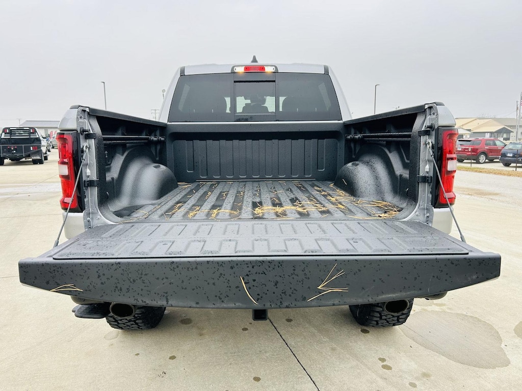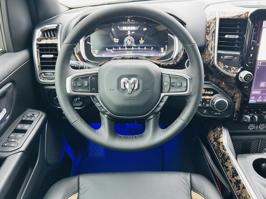 ENGINE: 5.7L V8 HEMI MDS VVT ETORQUE, TRANSMISSION: 8-SPEED AUTOMATIC (8HP75), QUICK ORDER PACKAGE 27Z BIG HORN, 3.92 REAR AXLE RATIO, WHEELS: 20 X 9.0 ALUMINUM PAINTED CLAD, TIRES: 275/55R20 OWL ALL SEASON, BLACK, DELUXE CLOTH BUCKET SEATS, GVWR: 7,100 LBS, BED UTILITY GROUP, TRAILER TOW GROUP, BIG HORN LEVEL 2 EQUIPMENT GROUP, NIGHT EDITION, TRAILER BRAKE CONTROL, 33 GALLON FUEL TANK, E-LOCKER REAR AXLE, DUAL-PANE PANORAMIC SUNROOF, BLACK TRAILER TOW POWER MIRRORS, FRONT LICENSE PLATE BRACKET, REAR WHEELHOUSE LINERS, RADIO: UCONNECT 5 NAV W/12.0 DISPLAY, 9 AMPLIFIED SPEAKERS W/SUBWOOFER, CLUSTER 12 TFT COLOR DISPLAY