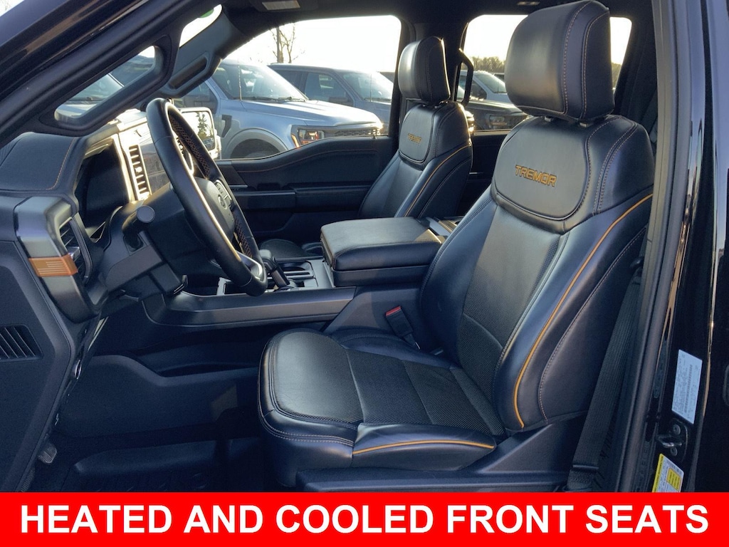 Sink into the comfortable Leather front seat upholstery of this F-150 Tremor and enjoy a refined driving experience. The Power driver seat controls and Power passenger seat controls allow you to find the perfect seating position, while the Driver lumbar and Front passenger lumbar support ensures comfort on long journeys. With Automatic climate control and Dual-zone front climate control, you and your passenger can customize the temperature to your liking. The Heated front seats provide warmth on chilly mornings, and the Heated steering wheel adds an extra touch of luxury. The Power Rear Window w/Defroster offers added convenience. Stay connected with 2 interior 120V AC power outlets and 1 12V DC Power Outlet, allowing you to power your devices on the go. The Steering Electric power-assist steering system provides effortless handling, and the Adjustable pedals ensure a comfortable fit for drivers of all sizes.
