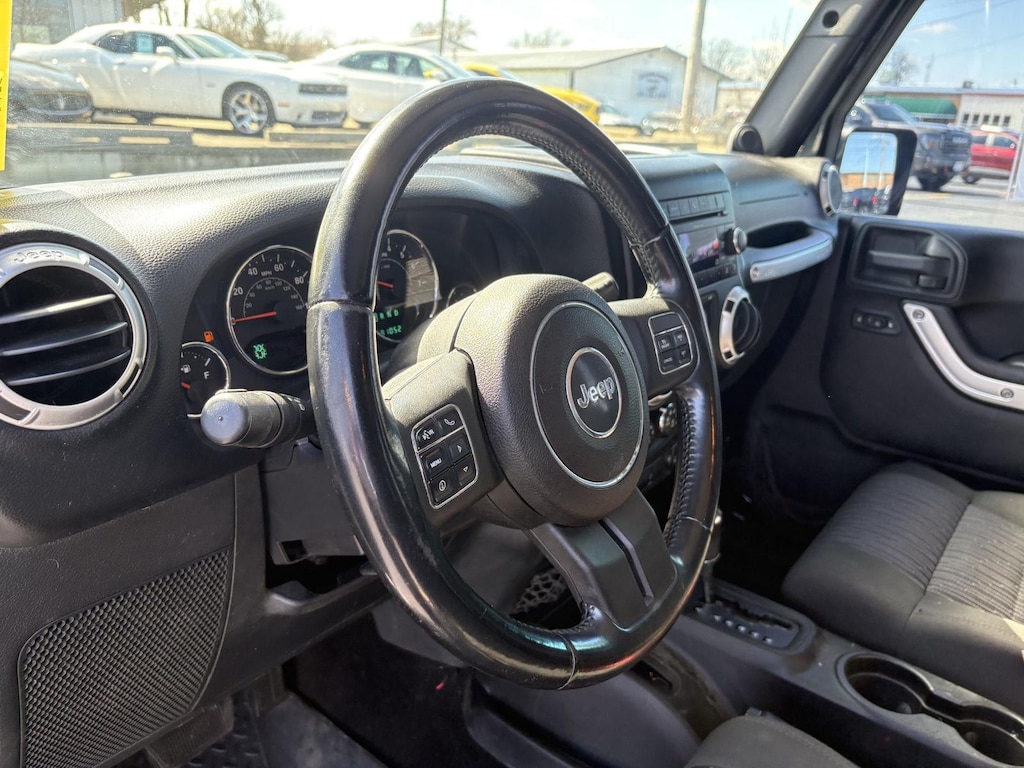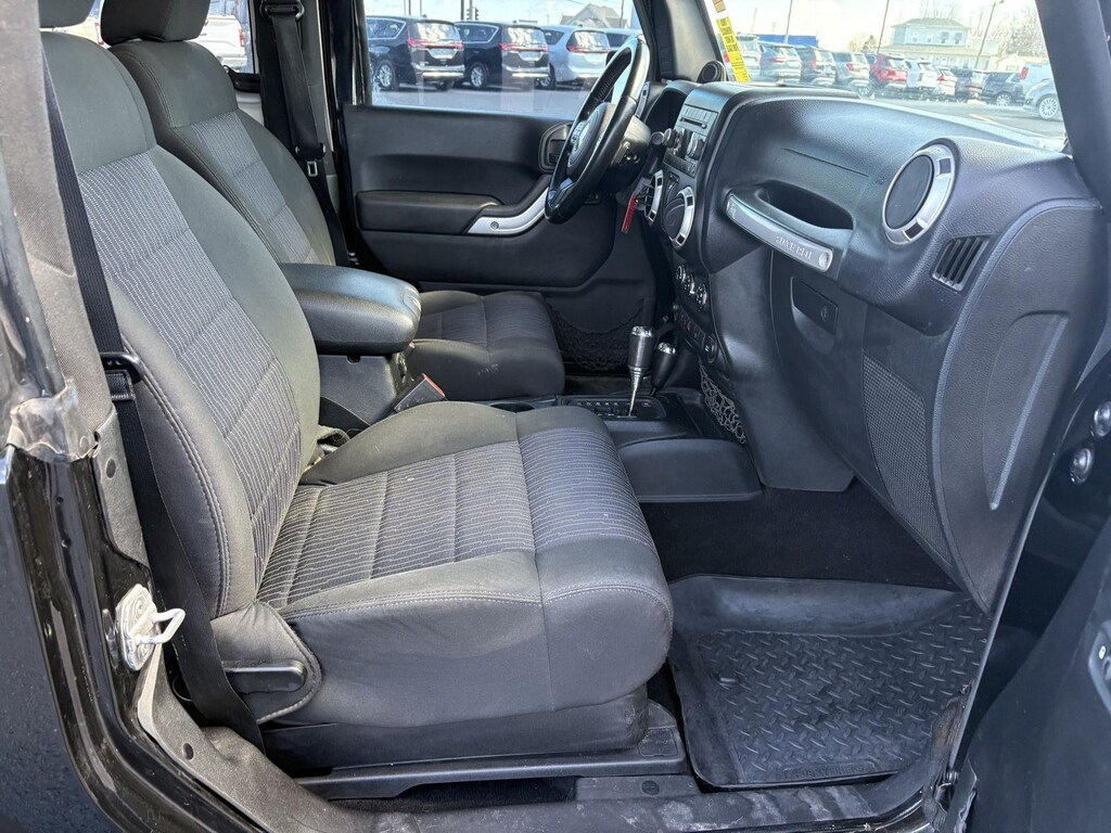 Step inside the 2011 Jeep Wrangler Sahara and experience a comfortable and functional interior. The Cloth Bucket Seats offer a supportive and comfortable ride, while the Driver Height Adjuster Seat allows you to find the perfect driving position. Air Conditioning with Auto Temp Control keeps the cabin comfortable, no matter the weather outside. The Remote Start System lets you warm up or cool down the Wrangler before you even step inside. The Leather-wrapped steering wheel adds a touch of luxury, while the Front Seat Back Map Pockets provide convenient storage for your essentials. With plenty of cargo space, this Wrangler is ready for everything from daily errands to weekend adventures.