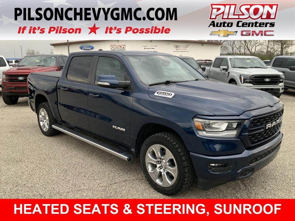 ENGINE: 3.6L V6 24V VVT ETORQUE UPG I, TRANSMISSION: 8-SPEED AUTOMATIC (850RE), QUICK ORDER PACKAGE 23Z BIG HORN, 3.21 REAR AXLE RATIO, WHEELS: 20" X 9" ALUMINUM CHROME CLAD, TIRES: 275/55R20 OWL ALL SEASON, MONOTONE PAINT, BLACK, DELUXE CLOTH BUCKET SEATS, GVWR: 6,900 LBS, PREMIUM LIGHTING GROUP, BIG HORN LEVEL 2 EQUIPMENT GROUP, SPORT APPEARANCE PACKAGE, BED UTILITY GROUP, DUAL-PANE PANORAMIC SUNROOF, WHEEL TO WHEEL SIDE STEPS, PICK-UP BOX LIGHTING, RADIO: UCONNECT 5 W W/8.4" DISPLAY, 9 AMPLIFIED SPEAKERS W/SUBWOOFER, REMOTE START SYSTEM, TRI-FOLD TONNEAU COVER, CLUSTER 7.0" TFT COLOR DISPLAY, BLIND SPOT & CROSS PATH DETECTION, PARKSENSE FRONT/REAR PARK ASSIST W/STOP, REAR UNDERSEAT COMPARTMENT STORAGE, 115V AUXILIARY POWER OUTLET