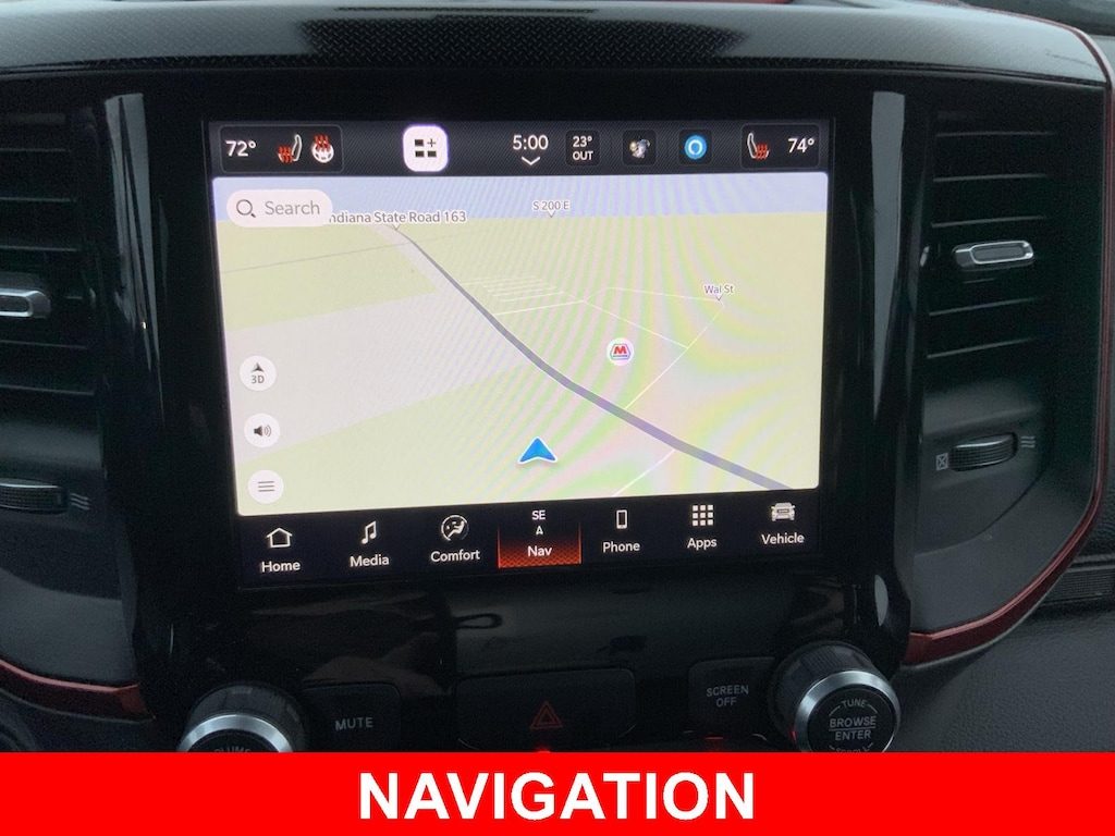 ENGINE: 5.7L V8 HEMI MDS VVT ETORQUE, TRANSMISSION: 8-SPEED AUTOMATIC (8HP75), QUICK ORDER PACKAGE 27W REBEL, WHEELS: 18 X 8.0 PAINTED MID-GLOSS BLACK, MONOTONE PAINT, FLAME RED CLEARCOAT, RED/BLACK, CLOTH/VINYL LOW BACK BUCKET SEATS, GVWR: 7,100 LBS, REBEL LEVEL 1 EQUIPMENT GROUP, ELECTRIC SHIFT ON DEMAND TRANSFER CASE, MOPAR REBEL HOOD DECAL, RADIO: UCONNECT 5 NAV W/8.4 DISPLAY, REMOTE START SYSTEM, MANUFACTURER'S STATEMENT OF ORIGIN
