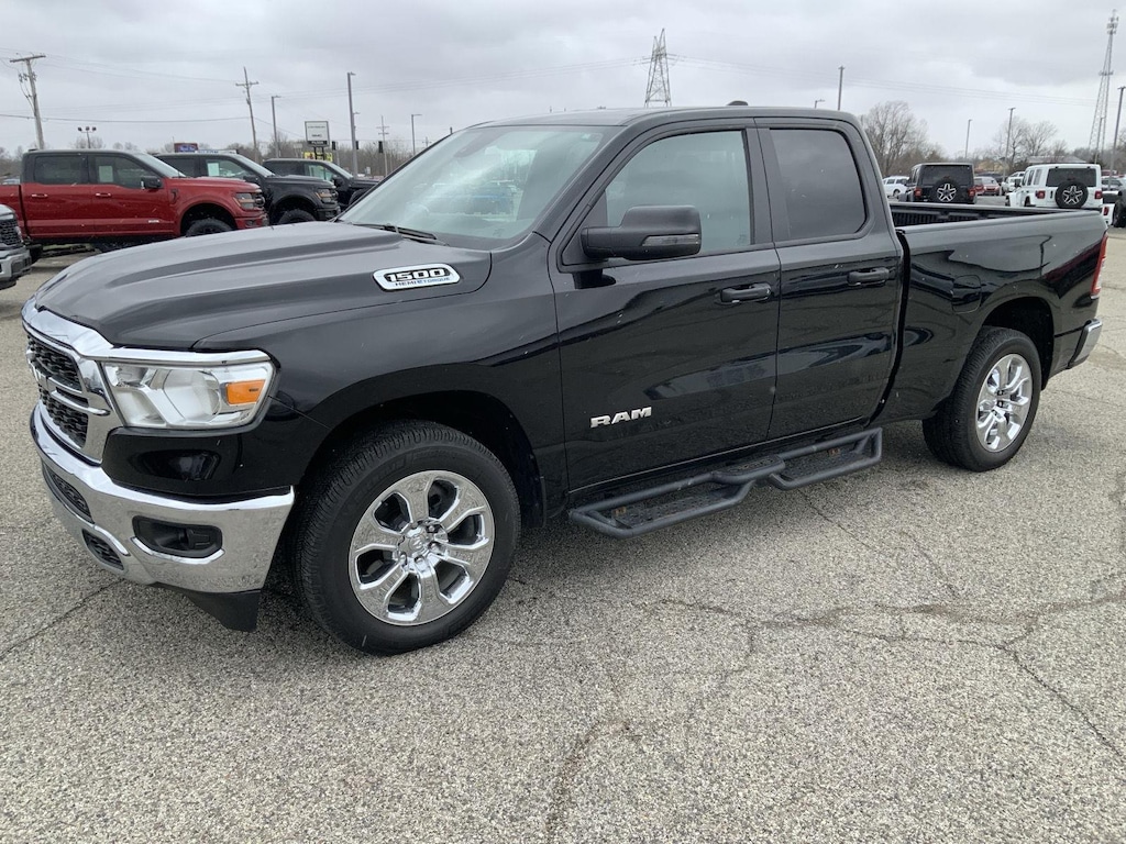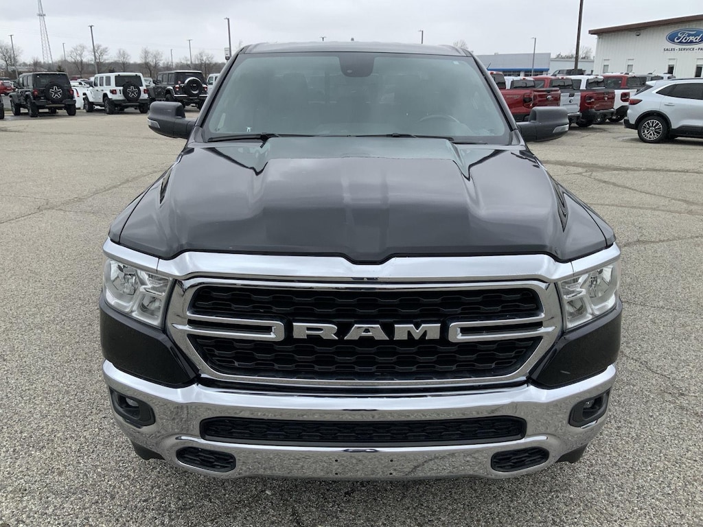 ENGINE: 5.7L V8 HEMI MDS VVT ETORQUE, TRANSMISSION: 8-SPEED AUTOMATIC (8HP75), QUICK ORDER PACKAGE 27Z BIG HORN, 3.21 REAR AXLE RATIO, WHEELS: 20 X 9 ALUMINUM CHROME CLAD, TIRES: 275/55R20 ALL SEASON LRR, MONOTONE PAINT, DIAMOND BLACK CRYSTAL PEARLCOAT, DIAMOND BLACK CRYSTAL PEARLCOAT, DIESEL GRAY/BLACK, DELUXE CLOTH BUCKET SEATS, GVWR: 7,100 LBS, ANTI-SPIN DIFFERENTIAL REAR AXLE, FRONT LICENSE PLATE BRACKET, MOPAR UNDER RAIL BOX BEDLINER, RADIO: UCONNECT 5 W W/8.4 DISPLAY, REMOTE START SYSTEM, MOPAR FRONT & REAR RUBBER FLOOR MATS